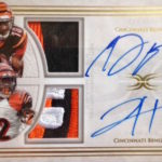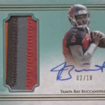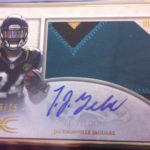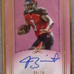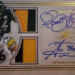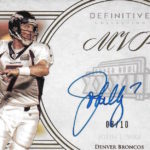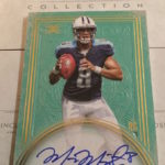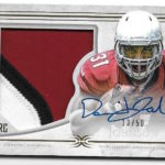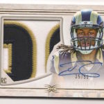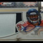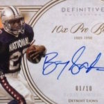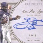 Six of the cards are autographed and two are “premium” Relics. There will be as many as two rookie patch autos per box and the same holds true for rookie autographs. The rest will be NFL veterans or legends. (Need a checklist? You can see it here.)