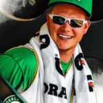 Design: Very clean, sharp. I'm a big fan of the lack of truly defined borders. The diagonal slash with the logo helps the design tremendously, giving it a kind of gift-wrapped appearance. The overall appearance is very modern, looking like screen shot off of a TV broadcast while the player is at bat. For me, that really works.