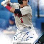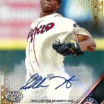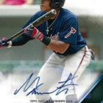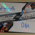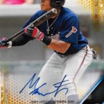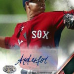 The design is the same as the MLB release, it's just the logos and players that are different. Meanwhile, the print run here inevitably has to be lower than the standard MLB set and the autographs are more plentiful. (Each box will typically include two autographs and two Relics.)