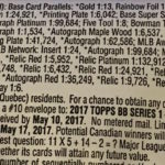 […] What: 2017 Topps Series 1 baseball cards Arrives: Feb. 5 Box basics: One autograph or Relic per 36-pack box (12 boxes per case); One autograph and two Relics per 10-pack jumbo box (six boxes per case) Checklist: Click here to view. Gallery & SP info: Click here to view. […]