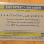 Collectors who attended the recent Topps Transcendent Collection party had a shot at 1/1 preview cards for 2017 Topps -- base cards with a dated foil stamp -- while today Topps revealed card No. 1 in the set as being reigning National League MVP and Chicago Cubs star Kris Bryant.