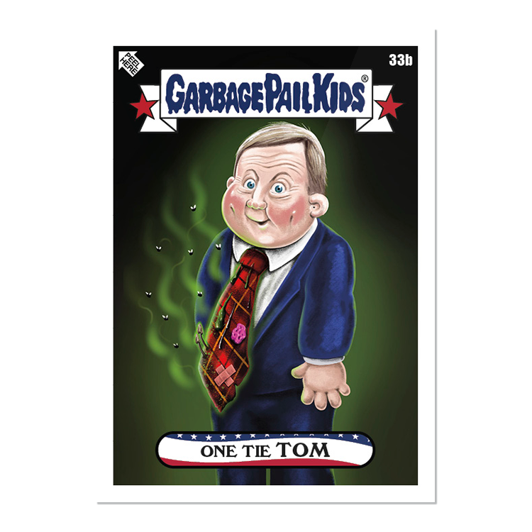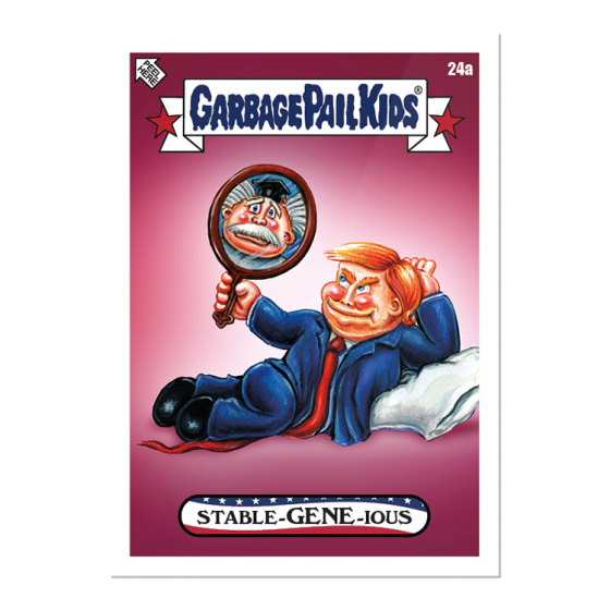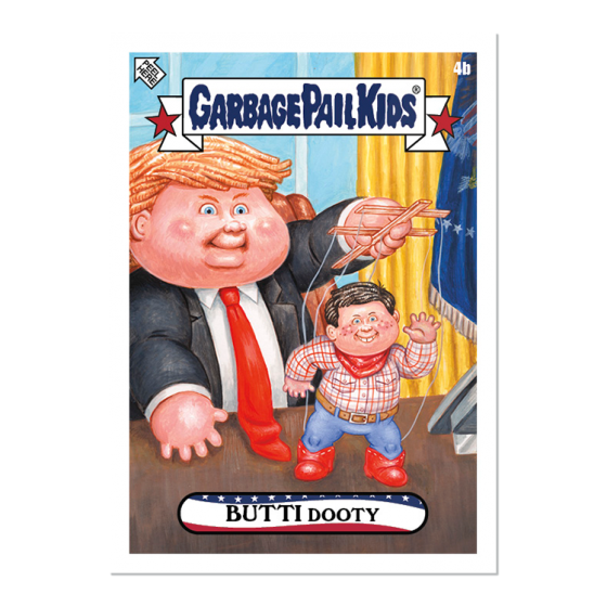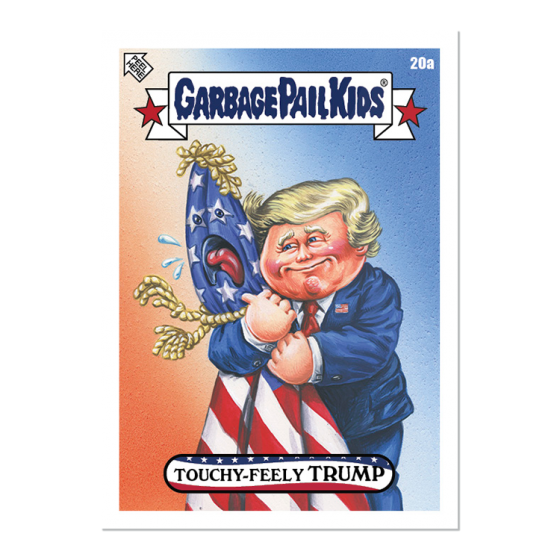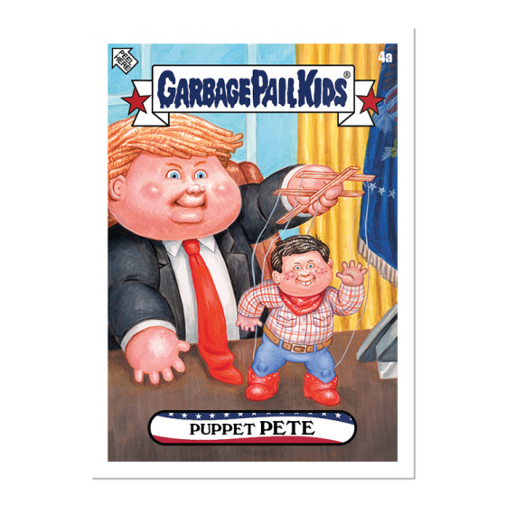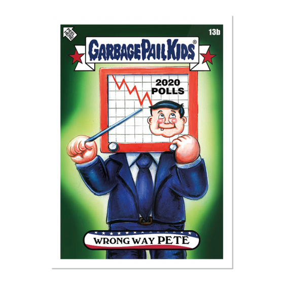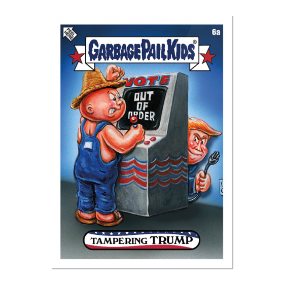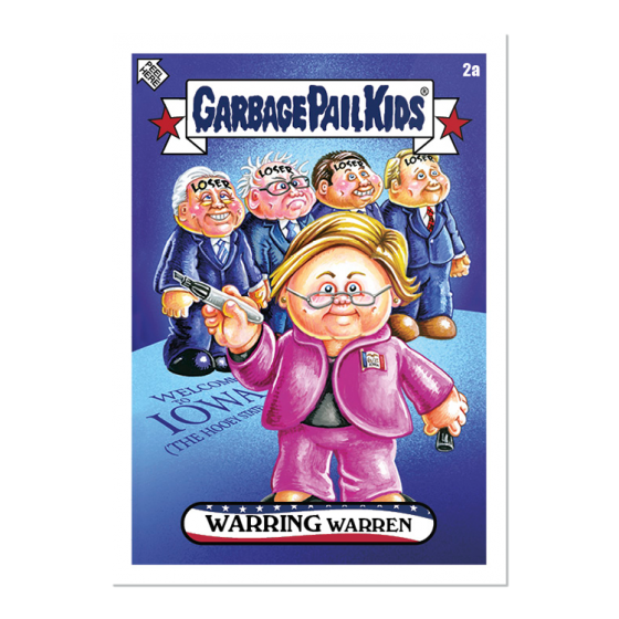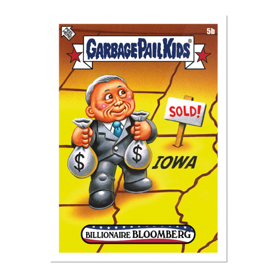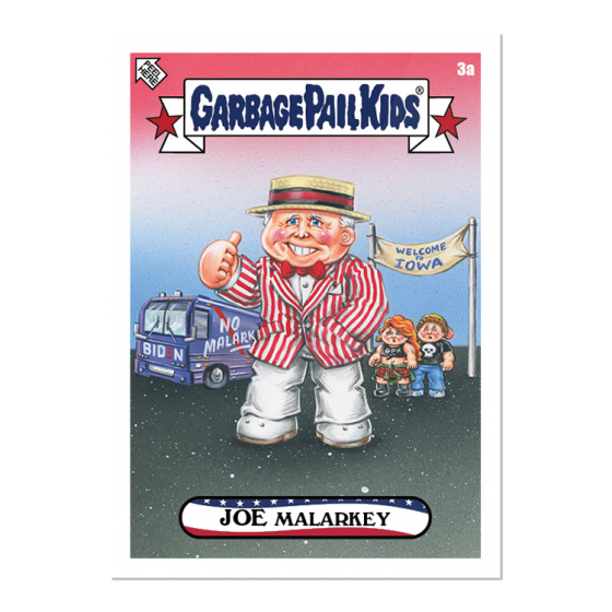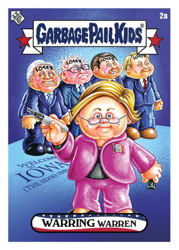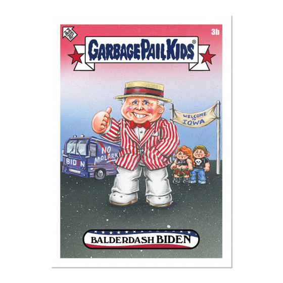 Topps has revealed the first set of 2020 Garbage Pail Kids disg-Race to the White House stickers that it will produce this year -- it all starts with the Iowa Caucus pack.