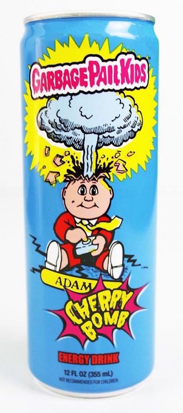 Iconic GPK Adam Bomb gets the nod on the Cherry Bomb energy drink ($3.99 a can) and on a "popping candy-infused cherry-flavored chocolate bar" too. A second chocolate option for Leaky Lindsay will include a "slimy green gooey center."