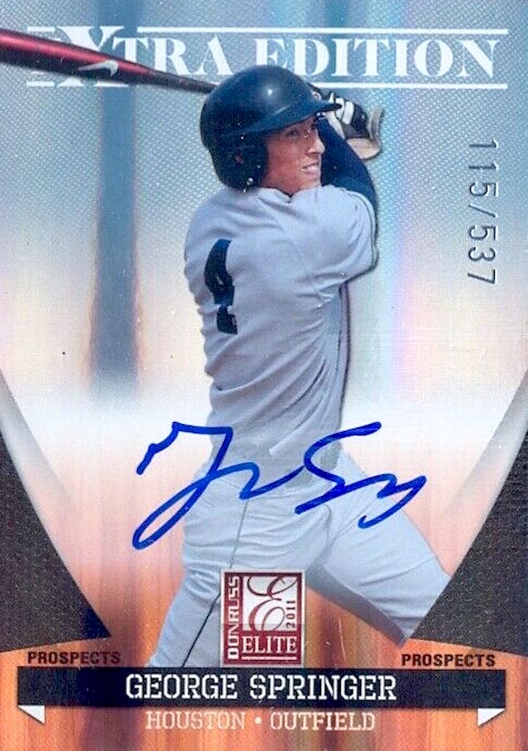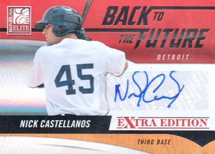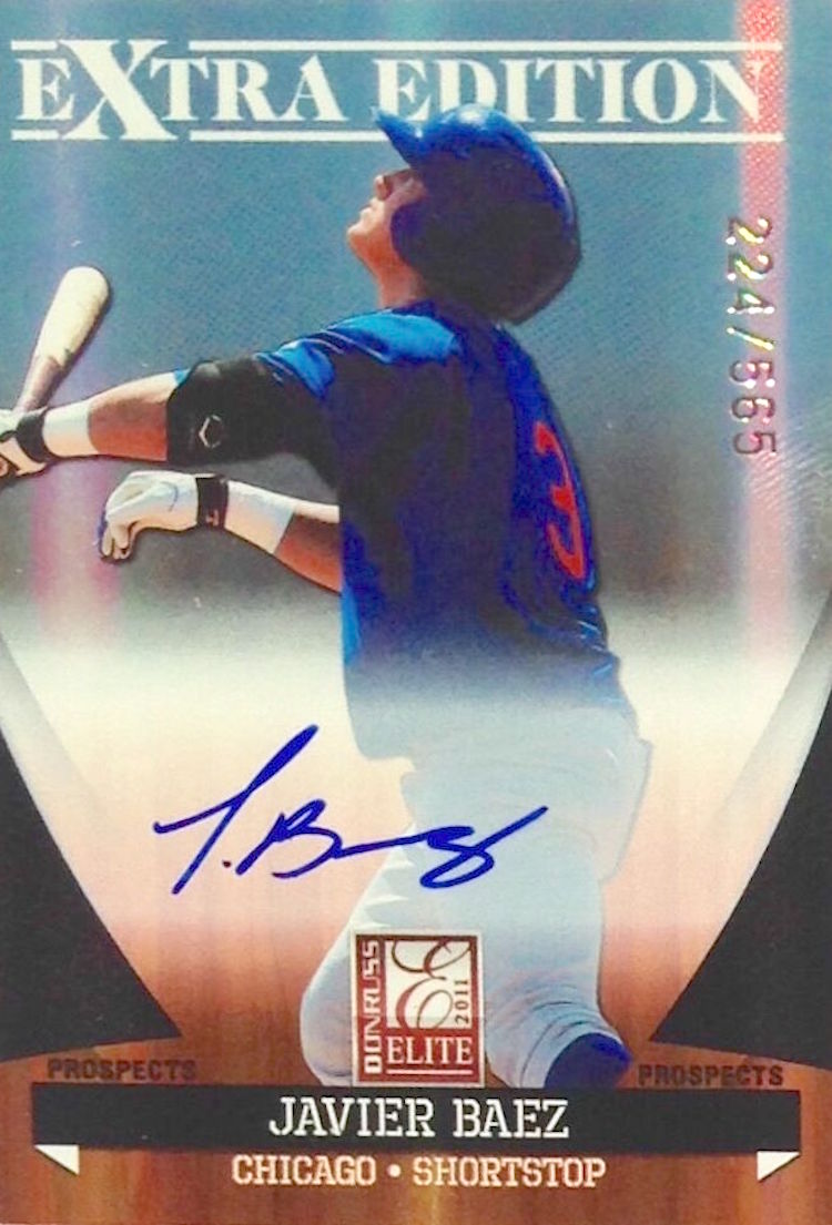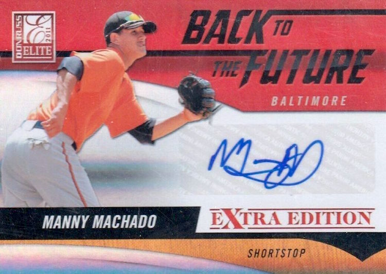 Joining Cole in 2011 Donruss Elite Extra Edition are Anthony Rendon, Francisco Lindor, Josh Bell, Trevor Bauer, Javier Baez, George Springer, Trevor Story, Brandon Nimmo, Nick Castellanos and Manny Machado. All but the last two can be found on standard autos, meaning they have plenty of ink to be found here, too. (And, yes, there are many other guys here who have been hit and miss like Greg Bird, Archie Bradley and Dylan Bundy among others.) There are also a number of insert autos in the product -- with some of these guys top guys grouped together on rare cards.