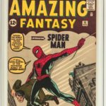 A CGC 6.5 copy of Amazing Fantasy No. 15, the first appearance of Spider-Man, isn't at six-figures but is still, well, amazing. It's at $50,190 including premium. To see all the notable books in this auction, click here.