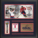 Both auctions end today and the framed displays crafted by Fanatics include not only the Gillette blades he used but also their signed boxes as part of the items that include a montage of his season and their use.