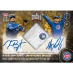 - ON-CARD DUAL AUTO RELIC # TO 25 – KRIS BRYANT THROWS TO ANTHONY RIZZO TO SECURE FIRST WORLD SERIES TITLE SINCE 1908 – TOPPS NOW $499.99