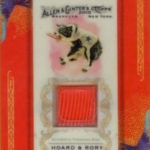 That brand? It's Topps' Allen & Ginter, which has included canine cardboard since its debut in 2006 when it included cards and paw-print Pawtographs from Ch. Felicity's Diamond Jim, an English Springer Spaniel who won Best in Show honors at the 2007 Westminster Dog Show. In 2010 the brand included cards and Relics for Rory, who was "America's Most-talented Dog" -- a three-time disc dog world champion who dazzled with his skills. (The memorabilia is a piece of a used frisbee.)