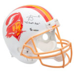 Sixteen items make up the initial wave of memorabilia in the collection with autographed mini-helmets, replica helmets, footballs, jerseys and photos in the mix. A Bucs mini-helmet is the least-expensive item at $224.99, while signed jerseys top out at $599.99.