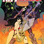 "Los Angeles is a strange town on the best of days, but in the summer of 1974, the City of Angels feels especially demonic. As temperatures soar and wildfires burn, all sorts of strange creatures are drawn to town, including Vampirella," it writes. "While Vampi goes out and hunts down monsters all across La La Land -- defending humanity from evil -- she's also killing it every night on stage as a member of the all-girl rock group Witchkraft -- defending rock 'n' roll from a dying scene. Help arrives in the form of four creatures who've just flown into town: The Starchild, The Demon, The Spaceman and The Catman. Away from their home turf and trying to record their new album, KISS discovers that all their favorite L.A. bands have mysteriously broken up, disappeared, sold out, or gone crazy. Led by a driver who moonlights in the occult and haunted by satanic strangers dressed in black, KISS finds themselves drawn into a web conspiracy that threatens to kill rock 'n' roll itself."