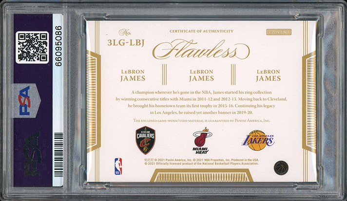 The card, which features the one iconic league patch found on one of James' Cavaliers, Heat and Lakers jerseys all in one place, has been removed from its sticker-sealed Panini case as it was found in a Flawless briefcase and placed into a PSA slab where it has been noted as authentic but was not graded.
