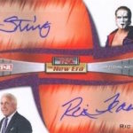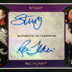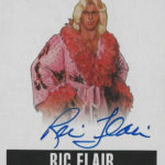 Flair's newest autographs are found in 2017 Topps WWE (up top), then on a single dual-auto card in 2017 Topps WWE Undisputed alongside his daughter, Charlotte, and on another with her in 2017 Topps WWE Road to WrestleMania.