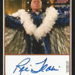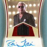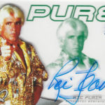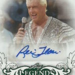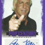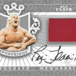 It wasn't long ago that collectors had absolutely zero certified autographs to own. His first ink came back in 2009 Donruss Americana -- first as a promo card limited to only 15 copies (shown in a blue robe) and then an autograph (above) found only in retail packs that was limited to only 225 copies. Since then, he's appeared on nearly 550 different certified autograph cards from TRISTAR, Leaf Trading Cards, Topps, In the Game and Panini America. Most of those cards are found in TNA products thanks to parallels during Flair's brief run with that company, while Leaf has included him in its Pop Century, wrestling and even a boxing release. Topps, which has had the WWE license since 2005, recently got him into products -- and one rarer card, a 2005 Topps Heritage WWE autograph that he was slated to appear on that was never released, is among those out there signed after-the-fact and then certified by third-party authenticators. (But not all of the cards are real.)
