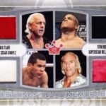 On the memorabilia card front, Flair is much rarer. He's got just over 100 different cards, though one of those predates any of his autographs and came from Fleer. That's a ring mat card in the 2002 Fleer WWE Raw vs. Smackdown set. TRISTAR once again lead the way with nearly 80 memorabilia cards -- these being his first personally worn cards. His first WWE memorabilia cards didn't arrive until last tear with a handful of Royal Rumble Mat Relics from his run as his daughter's manager. That leaves his only other memorabilia cards from Panini's Americana release in 2011 -- roughly 90 total cards across two types -- and they appear to be from a red pair of trunks. The same can be said for memorabilia cards from a Sportkings release in 2013 -- roughly 350 swatches total.