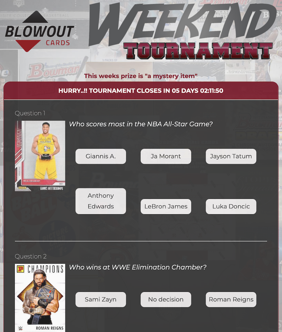 Did you get in on last week's action? Check the leaderboard and contact fish@blowoutcards.com to claim your prize if you're the winner.