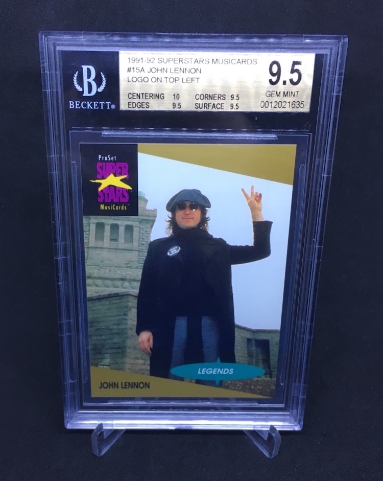 The Card: John Lennon 1991-92 Pro Set Superstars MusiCards #15a (logo on top left)
