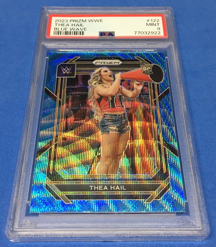 The Card: Thea Hail 2023 Panini Prizm WWE Blue Wave -- Rookie Card parallel