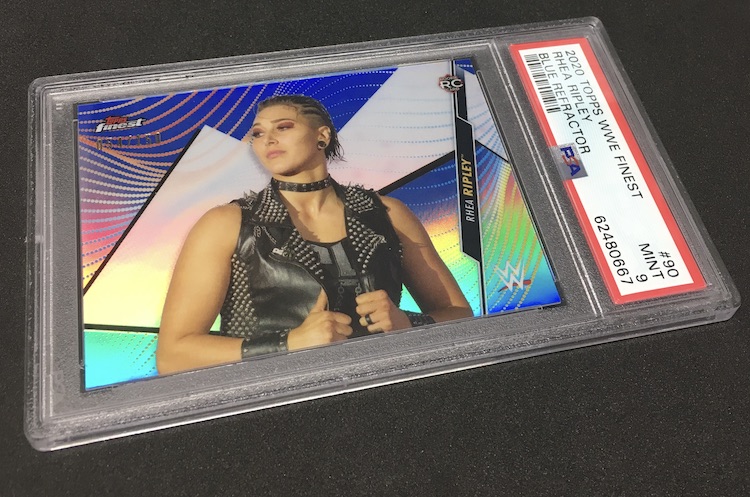 The Card: Rhea Ripley 2020 Topps Finest WWE Blue Refractor (/150) -- Rookie Card parallel