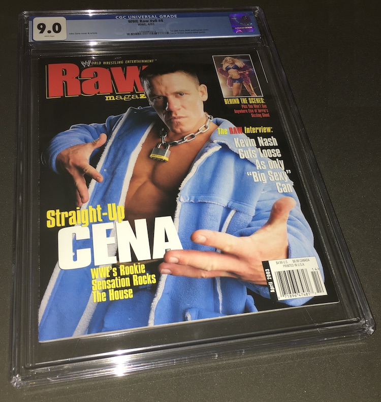 Reality Check: These are tough-sledding for grading if you ask me with light and fibery paper that can bend easily, heavy gloss and then staples and inner inclusions such as posters or merchandise catalogs that were made to be torn out. These are findable for sure ... but in good shape? Very hit and miss. Cena is easily one of the WWE's biggest names ever -- and he's a player in entertainment -- so an item like this is key just a couple decades later.