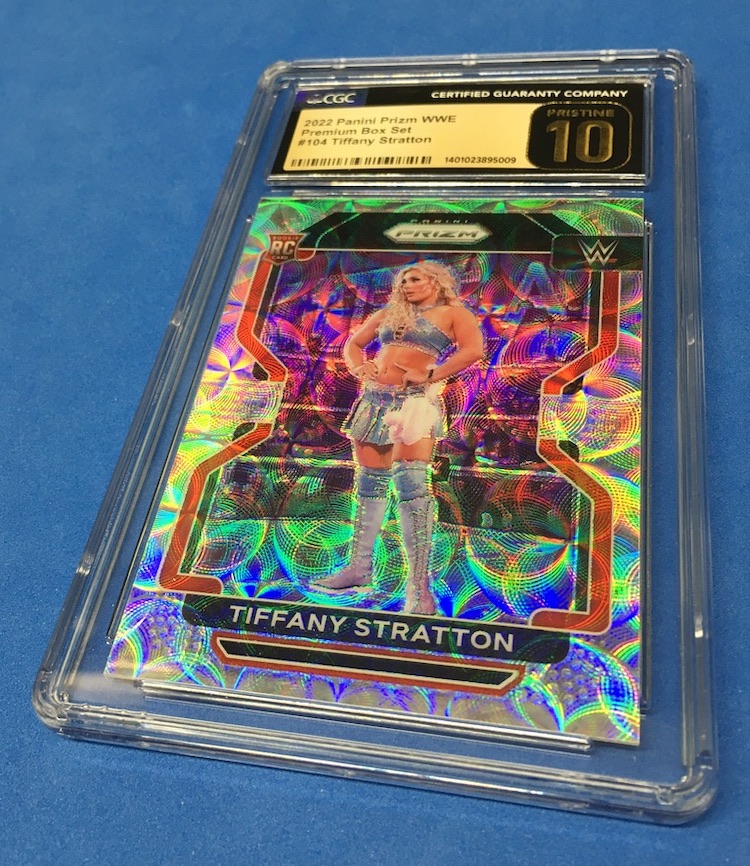 The Reason Graded: This one is fresh off the truck and a new addition to my stash just in time for WrestleMania and she's a big name new to the WWE roster who figures to have some big things happening soon ... and that's why I submitted a few cards I've had stacked up with an eye on grading. (I'd show more but this month's piece was basically complete when my new slabs arrived with some bangers like this one -- look for more next time and in the coming months.)