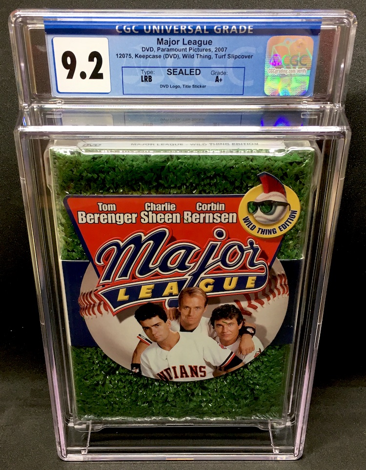 The Reason Graded: You'll see more of Major League later on in this edition of MTG ... but this is a new addition for me so I added it right here right now. Why? It's baseball season and this is the movie that should start a year if you ask me. When I found out that CGC finally started grading home video -- VHS, DVDs and more -- I poked around and grabbed a handful of sealed DVDs with an eye on slabbing. This one? It cost me $10 and I grabbed it with no hesitation. Why? I prefer smaller and lighter DVD slabs and I'm way more of a DVD fan in general than VHS, despite being around for both -- VHS since the early 1980s (via video rental stores at first) and then a DVD devotee since about 2001. This film is a favorite -- and I've owned it in a few formats -- but this one is a classic with an epic packaging approach. This is an edition that was the first DVD with some extras and it was a first-day buy, a hunt-it-down no-brainer back then. (It took a few stores but it was a Best Buy find for sure.) Forget the alternative asset yada yada yada spiel of some -- with this packaging I knew I needed it in a slab. It's pure gimmck but I dig it and I wanted to preserve a copy.
