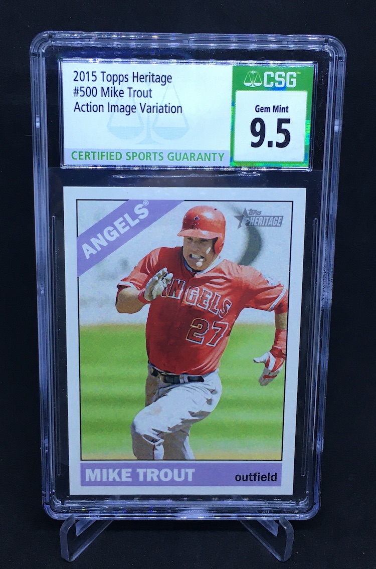 The Card: Mike Trout 2015 Topps Heritage #500 -- Action variation