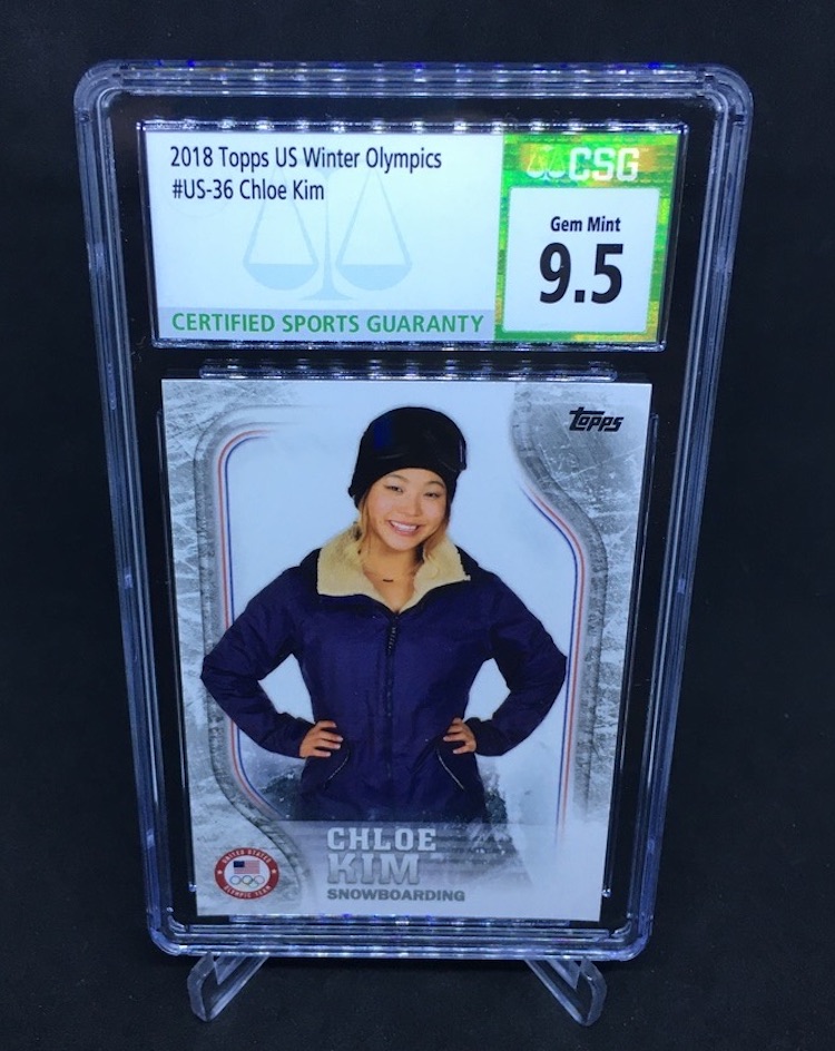 The Reason Graded: With the Olympics (albeit the Summer Games) on the radar this year, I figured I'd grade something simple from a recent Topps set to add to a few other Olympian slabs that I have. Simone Biles' stuff hadn't blown up at the point when I was picking cards, so I chose a Silver parallel of one of two cards Kim has in this set. Unfortunately the Silver parallel attribute fell off the data entry for CSG's system and nobody caught it. (This has actually happened a few times for me but I let it go -- but it's something for them and for you to watch for -- as it ultimately didn't affect the grade and, well, I'm not slabbing to sell.