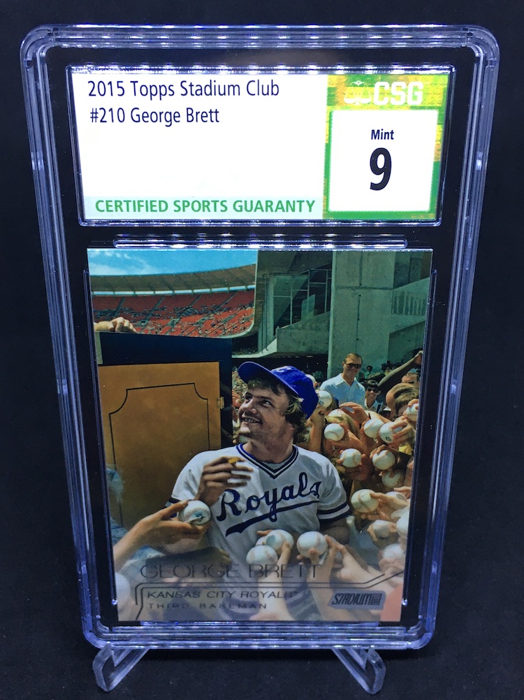 The Reason Graded: Find a copy of the July 1976 issue of National Geographic and flip to the story starting on Page 112 and you'll get the first part of the story that is this baseball card and its image. It's a photo of Kansas City Royals legend and Hall of Famer George Brett absolutely deluged by autograph-seeking fans and this appeared with a story about the city. Part 2? In 2014, pop singer Lorde had a hit song called "Royals" and she said it was inspired in part simply by her seeing the image in the magazine and that word across his chest. The following year, Topps unearthed this image from photographer Ted Spiegel for its annual visual showcase that is Stadium Club.