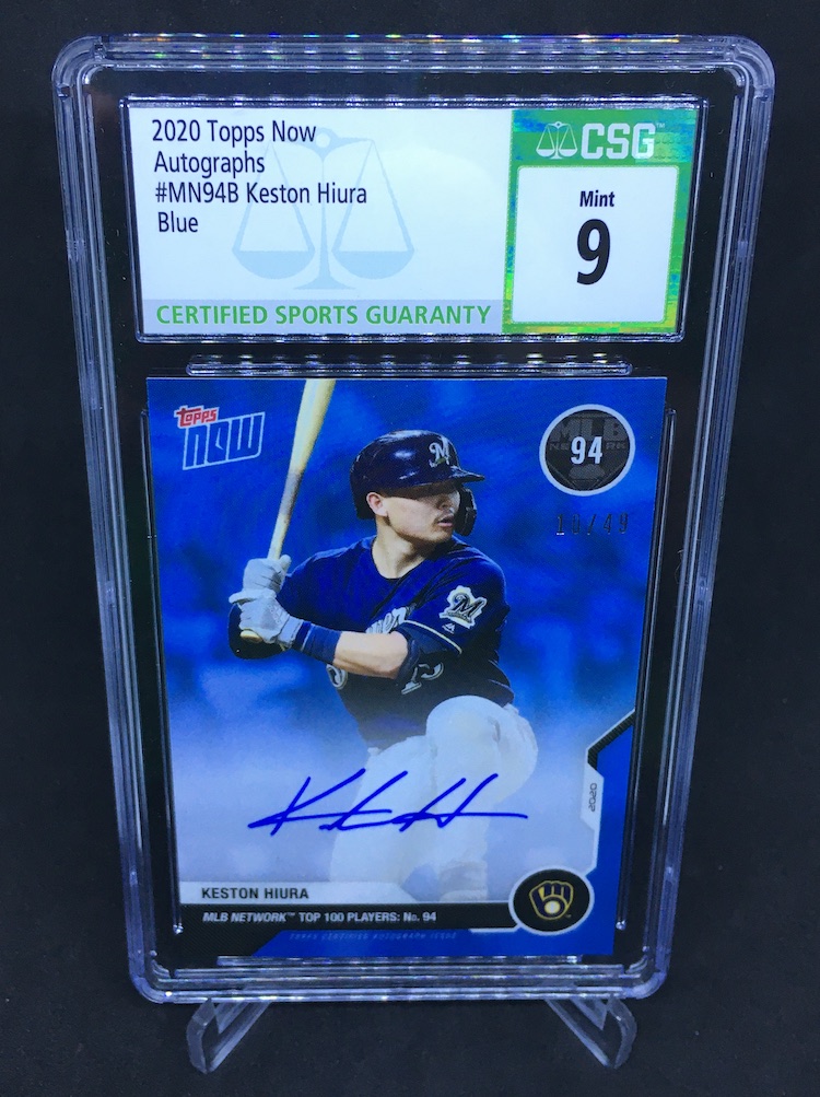 The Card: Keston Hiura 2020 Topps Now MLB Network Top 100 Players Blue Autographs #MN94B (/49)