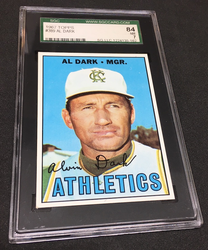 The Reason Bought: I didn't need this one but it jumped out at me for $9.99 as a super-cheap slab but also with a card having very little wrong with it save for what looks like either some errant wax paper or a small lift on that bottom-left corner. That's ugly but if I remember correctly under a loupe it looked like it was some extra funk atop the card and not the stock itself. Beyond that, I just liked the simplicity here with this former big-leaguer in his manager's cap less than a decade before he took this team to a World Series ring only after being dismissed and re-hired by the owner in the years between. At that time, he became just the third manager in MLB history to manage a team to a World Series in both leagues.