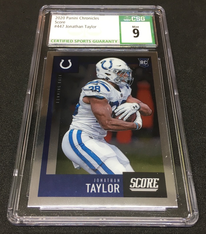 The Card: Jonathan Taylor 2020 Panini Chronicles NFL Score (Optichrome update) -- Rookie Card