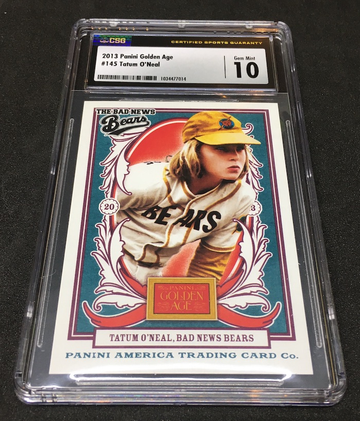 The Reason Graded: I landed this White parallel at a good price and knew it would eventually make its way into a slab after seeing how clean it was when I got it in-hand. This is one of a group of Bad News Bears actors who had base cards, minis and autographs in this Panini throwback release of a decade ago. I ripped tons of it -- so much so I probably have 15-20 minis of this card alone -- and then plenty more of the cream-bordered base. These White parallels, though, are a lot tougher and I want to say they had an announced run of under 100 copies but didn't go try to find that reveal. In all my boxes, I'm not sure I ever pulled more than one or two.