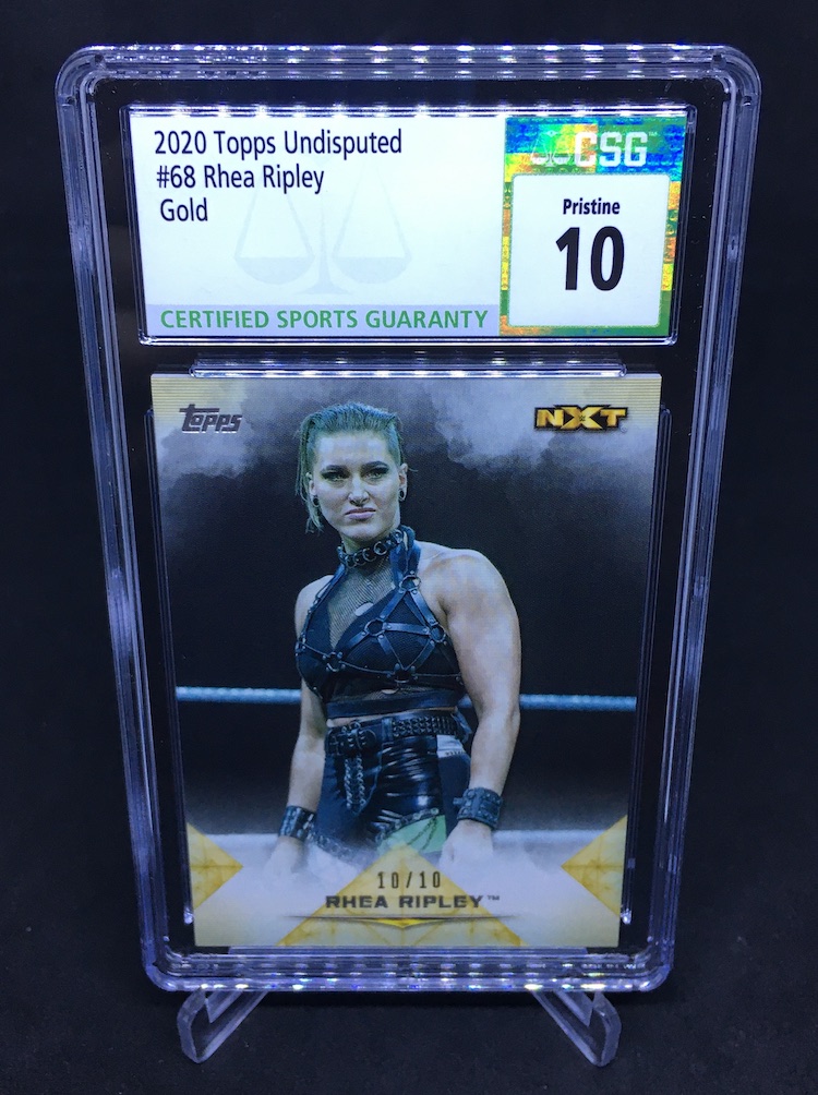 The Card: Rhea Ripley 2020 Topps WWE Undisputed Gold -- Rookie Card parallel