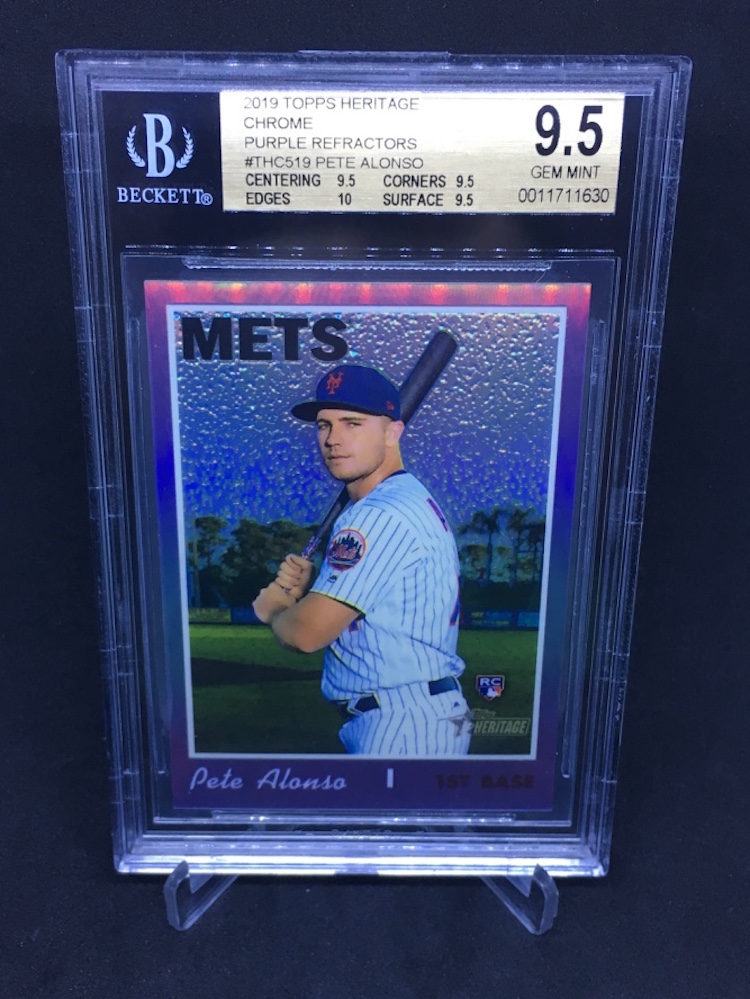 The Card: Pete Alonso 2019 Topps Heritage High Number Chrome Purple Refractors #THC519