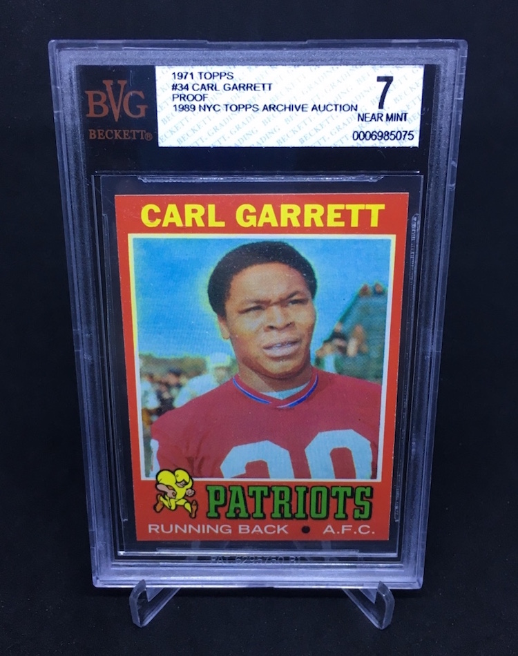 The Card: Carl Garrett 1971 Topps #34 -- 1989 Topps Auction blank-back proof Rookie Card