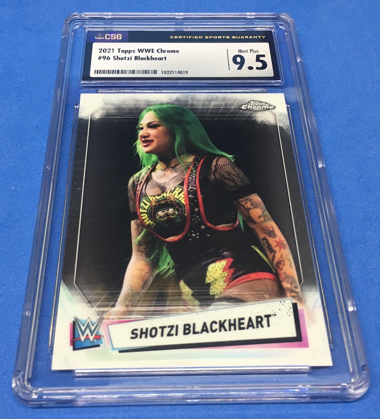 The Reason Graded: I spotted this show-pack rarity over on COMC and it looked really clean among the options at a modest price so I bit for a grab and slab without ever having it in-hand. Why? She's easily a top young name in the game and the non-traditional way these cards were released definitely will make these tougher to find over the years vs. traditional in-pack stuff -- plus these were multi-sport promo packs where the WWE stuff might be set aside by non-wrestling fans and forgotten.