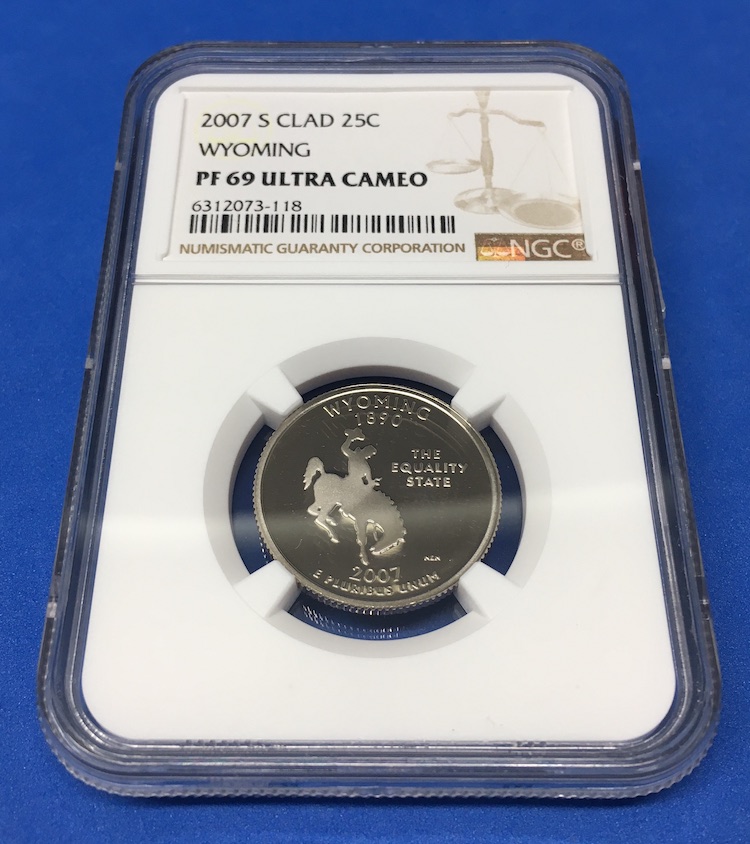 The Coin: 2007 U.S. quarter-dollar proof -- Wyoming version (2007 S CLAD 25C)