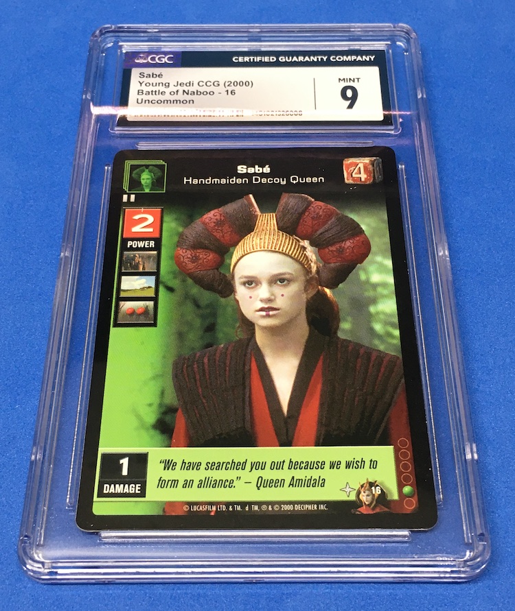 The Reason Graded: Sabé was a decoy to help protect Luke and Leia's mom back in the day -- I can't remember or care about which movie at this point -- but cards of Knightley still stand out as there aren't tons of them compared to a lot of characters. Plus, a lot of people don't seem to realize -- I didn't for a long time -- that this wasn't some GCI job where Padmé Amidala (aka Natalie Portman) was on screen twice and beyond that Knightley would go on to other notable roles. All that said, this card from a past gaming release jumped out at me on COMC because it's from literally years before other cards showed up for the character. My crack research shows nothing until 2012 Topps Star Wars Galactic Files for non-gaming/playing cards and then not much after that for a few years before more regular appearances. Knightley even now has a certified auto or two.