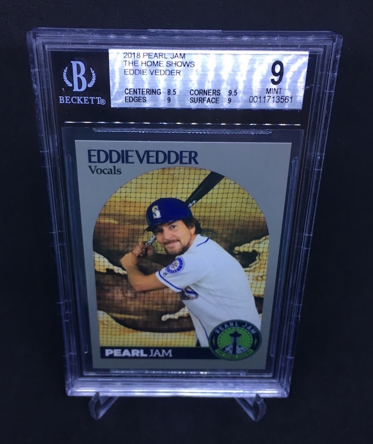 The Reason Graded: I ripped into a number of packs for these band-produced trading cards in a past #Buzz8in8 marathon. The packs were made for and sold at a series of key concerts in 2018 and include a number of cards for each member of the Rock Hall-honored band. In each of the three sets, the members were shown posing in the home team MLB uniforms -- these being for the Seattle "Home" Shows. I pulled and graded a couple of the Vedder cards in uniform because they are just classic cards to me -- the 1990-91 NBA Hoops design is re-created here well and the cutting and printing might be better than the original release. I only pulled one copy here so I couldn't be picky about what I submitted. I figured they would grade OK.