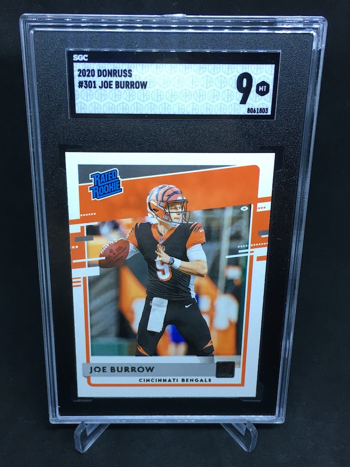 The Reason Bought: Burrow had a very strong start this season -- and I still think the Bengals could be players this year on the field as much as they should be on cardboard -- and I grabbed this cheap as lower-priced slabs weren't all that plentiful back when I was looking earlier this year. (I haven't examined pop reports but I bet there were a lot of Burrow cards slabbed in the last year, despite his injury, and many are perhaps not back in owners' hands.) That's where grabbing an SGC copy came into play. I thought this was a good buy and decided to hold onto it despite not really having anything else for him. Why? Donruss NFL has been good to me in the last five or so years.