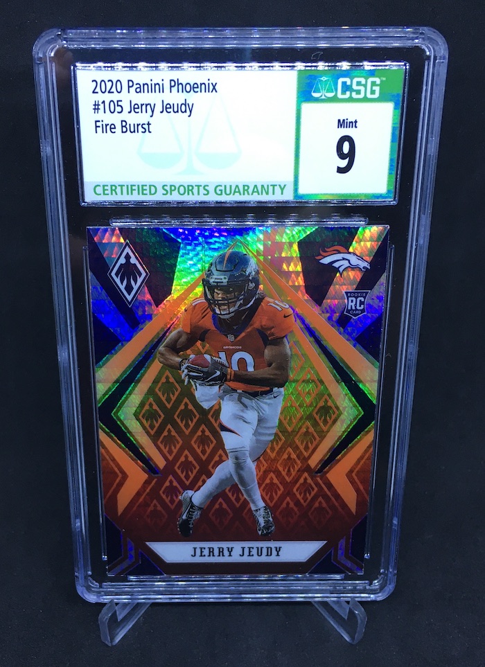 The Card: Jerry Jeudy 2020 Panini Phoenix Fire Burst #105 -- Rookie Card parallel