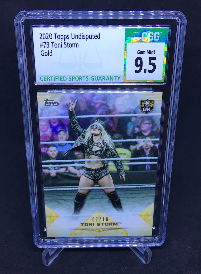 The Reason Graded: I'm a huge mark for this photograph of a rising WWE star -- one unfortunately in the news this week so she'll likely be rising elsewhere soon -- that I ponied up quite a bit for this rarer parallel copy of this base card. (I've done that more than once.) This was the first from my partial Toni Storm rainbow to get slabbed and it may not be the last as I am also an absolute sucker for slabbing Undisputed cards. Now that it's nearly gone -- the finale arrives soon if it's not in hands already -- I may grade more for rare pulls or names I like. If every card set could use this brand's printing style and stock, the graded card world would be a much happier place. I would be, too.