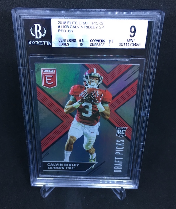 The Card: Calvin Ridley 2018 Panini Elite Draft Picks Rookie Card (red jersey variation)