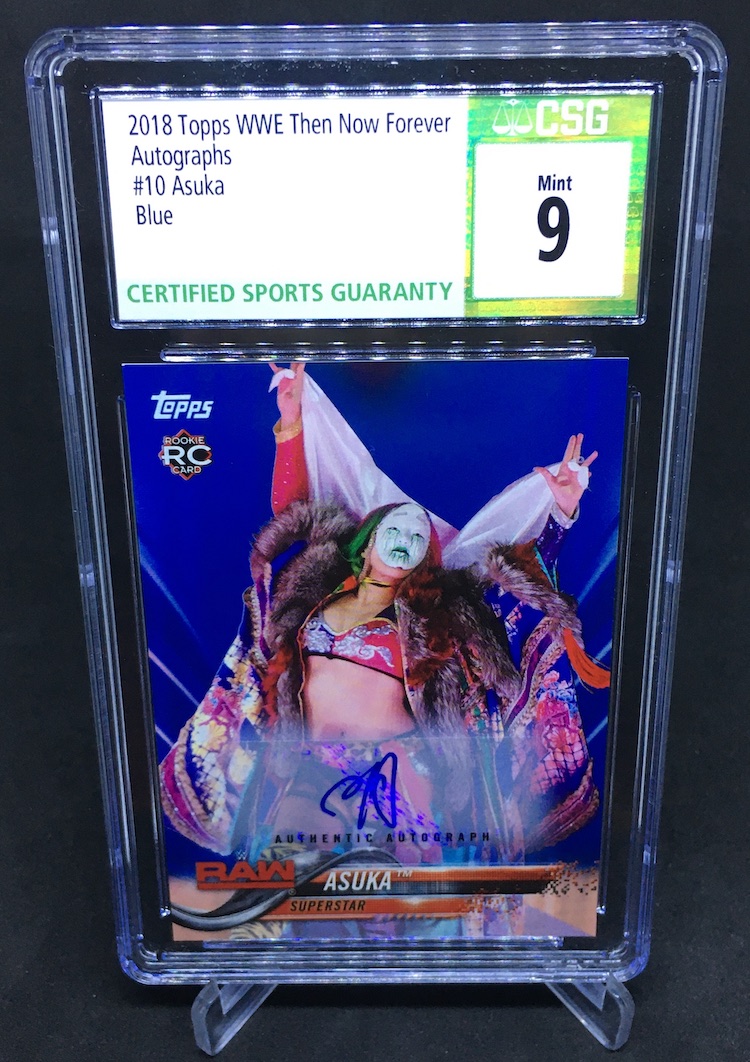 The Card: Asuka 2018 Topps WWE Then Now Forever (Series 2) Blue Autographs (/50)