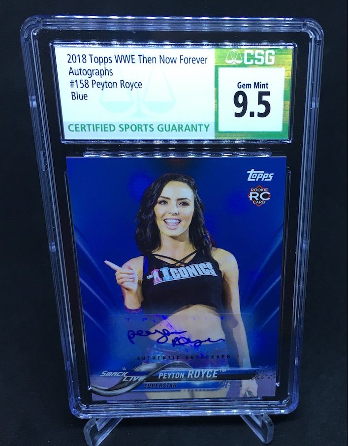 The Cards: Billie Kay & Peyton Royce 2018 Topps WWE Then Now Forever Blue Autographs (#111 and #158) (/50)