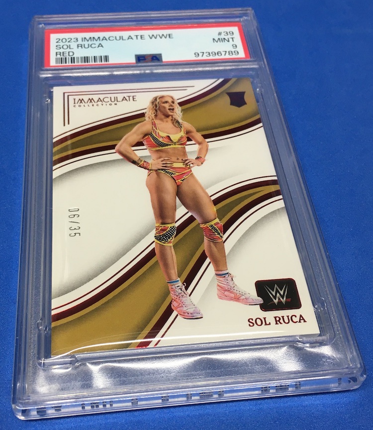 The Card: Sol Ruca 2023 Panini Immaculate Collection WWE Red (/35) -- Rookie Card parallel
