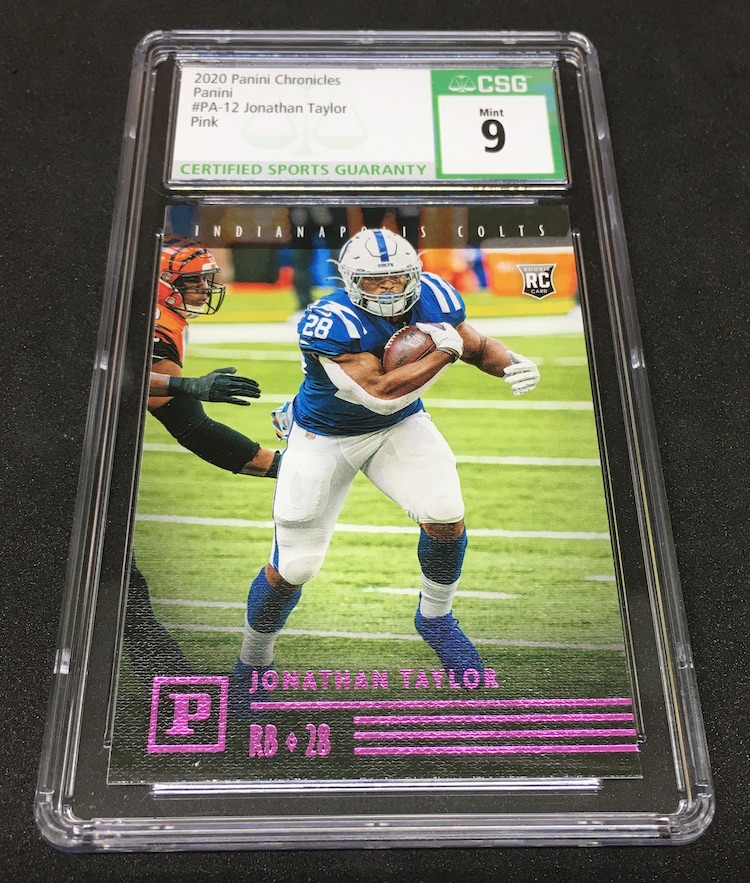 The Card: Jonathan Taylor 2020 Panini Chronicles Panini Pink -- Rookie Card parallel