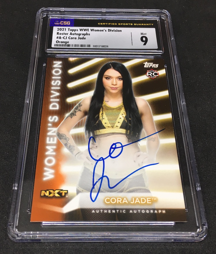 The Card: Cora Jade 2021 Topps WWE Women's Division Orange Autographs (/75) -- pre-rookie ink