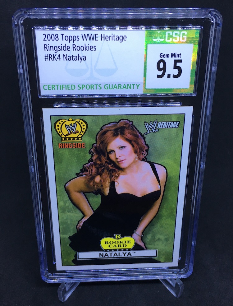 The Reason Graded: These days she's dubbed as the "BOAT" in the WWE women's ranks -- Best Of All Time -- and that may not be far off in all ways save for title reigns. She's definitely a veteran who has plenty of matches, pay-per-view appearances and so on in a career that's been reliably lengthy and she's helped make stars in NXT who are more than notable today, too. For in-pack, non-gaming cards, she doesn't have a lot early on -- a Heritage RC, an auto from that release and then this insert, which was only found in packs of certain Heritage blasters made for and only found at Walmart. The stock isn't all that friendly but when I saw how clean this one was I knew I had to slab it. Like a lot of Heritage cards from that time, the regular cards are always found with an iffy corner ... not this one.