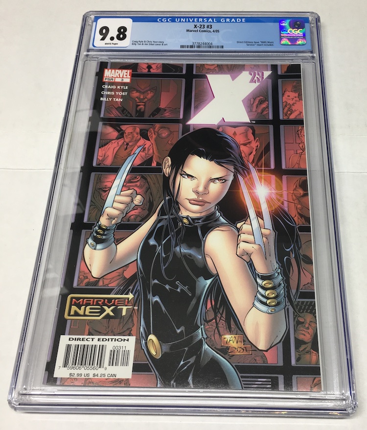 The Reason Bought: I can't keep up with the new stuff at all in the comics realm, but there are some characters I like on artwork here and there and occasionally I will bite when it comes to a slab. X-23, or the new Wolverine (or the daughter of Wolverine) is one where the earlier stuff from this artist and others are just interesting to me. Beyond the basic pose, the background with various other characters was something that struck me as cool. A lot of the earlier issues for this character's series seem to have even simpler covers with the character atop white backgrounds ... making this stand out more to me. (Keep in mind I'm merely a dabbler here ... I don't know a ton of ins and outs for the history -- I just like well-crafted covers in slabs.)